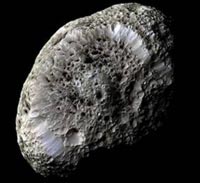 Miércoles, 4/7/2007 - 18:18 Las imágenes de Hiperión, tomadas por la Cassini a pocos kilómetros de distancia de esa luna, muestran un satélite irregular con un grado de porosidad superior al 40 por ciento, lo que hace que este cuerpo celeste que orbita en torno al planeta tenga escasa densidad