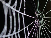 Lunes, 8/2/2010 - 7:39 La telaraña cambia su estructura cuando se moja. Se forman nudos donde quedan capturadas las gotas de agua.